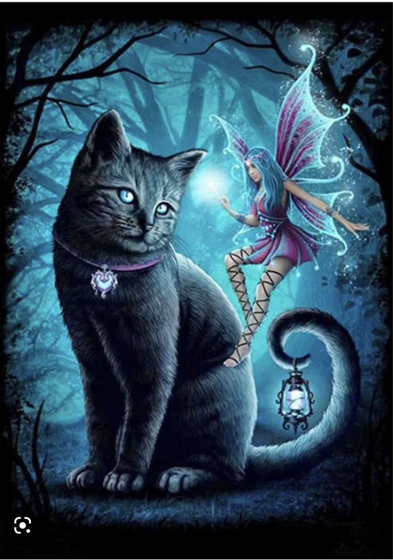 CHAT AVEC FÉE - BRODERIE DIAMANT