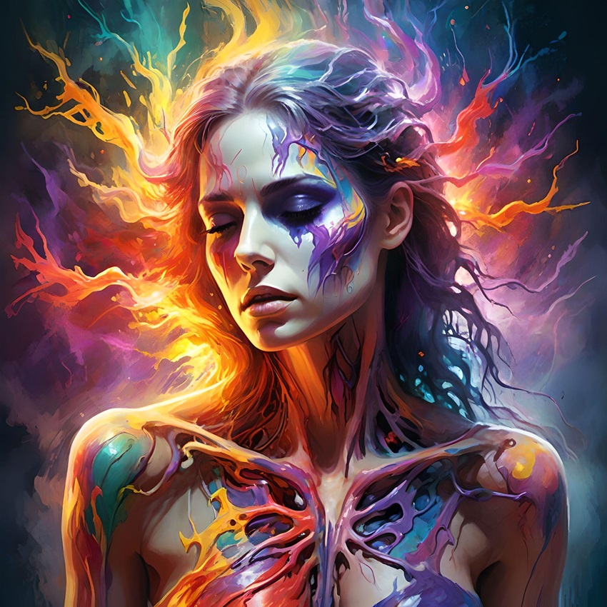 Créez une œuvre vibrante avec cette toile diamond painting représentant une femme entourée de couleurs éclatantes. Un mélange d’émotion, de force et de beauté à assembler diamant par diamant.