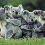 Petite famille de koala dans l’herbe à diamanter sur une toile avec de belles finitions.