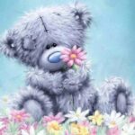 OURSON DANS UN CHAMPS DE FLEURS – BRODERIE DIAMANT – KIT COMPLET (60X60 cm)