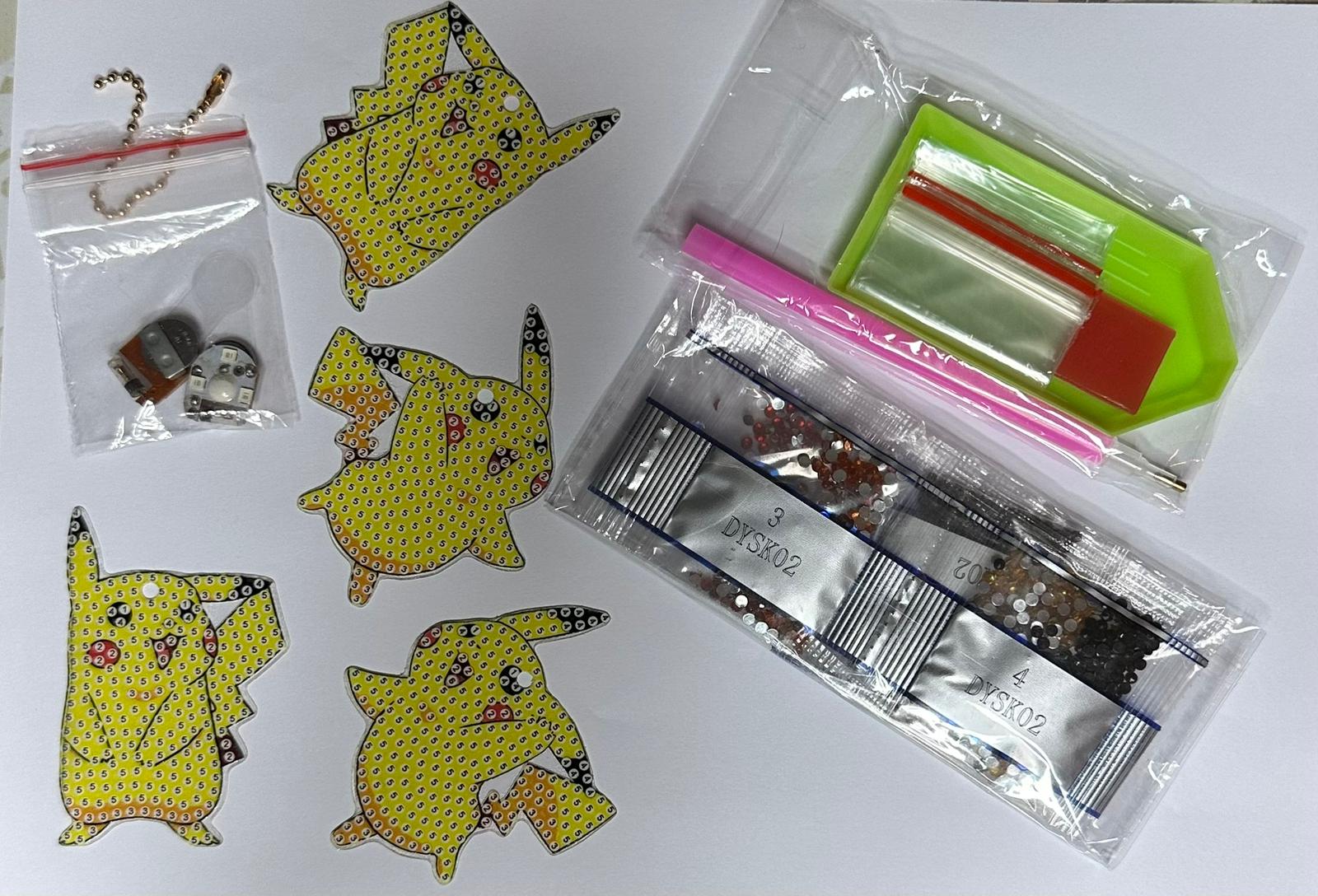 kit complet pour réaliser porte-clés lumineux en diamants spéciaux. Thème Pokémon.
