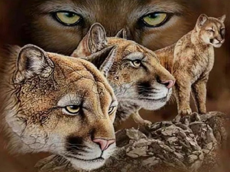 3 PUMAS – BRODERIE DIAMANT – KIT COMPLET (75×55)