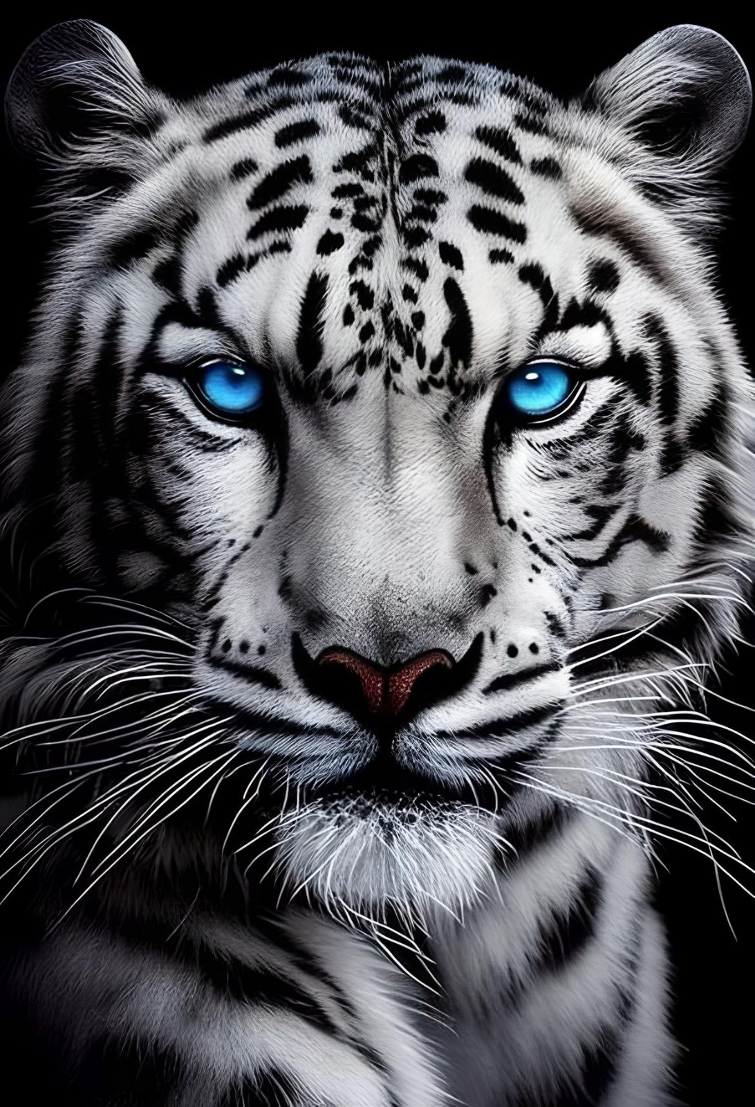 Magnifique tigre blanc aux yeux bleus . Cette toile est composée de 70 couleurs dont 5AB et 3 FD, elle est disponible en diamants carrés en RESINE et en diamants ronds ACRYLIQUE.